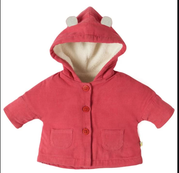 Comfortable and incredibly soft, the hooded Bear Cub Cord Coat is cosy fun-to-wear garment that everyone will love! Created by Frugi, it is made from organic cotton, featuring a fleece lining fabric of contrasting colour. And it will never feel scratchy! Perfect for the chillier days! Full of details that make this model extra-special: the fluffy 3D ears, the tone-sur-tone buttons and the front pockets! For a really practical garment! Once your child has worn this fantastic coat, he will never want to take it off, and you will wish you had one yourself!