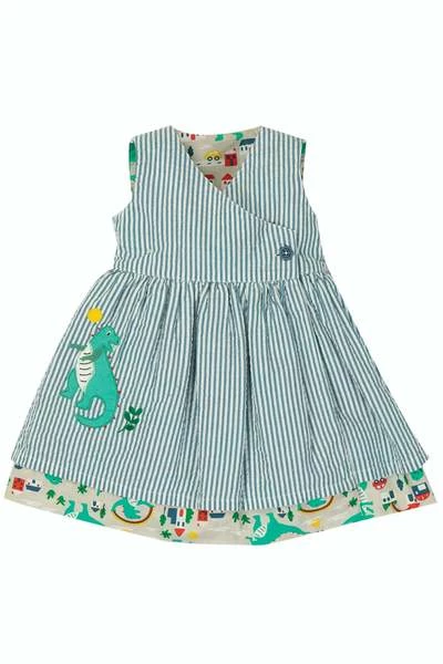 Two beautiful dresses rolled into one! This brand NEW kimono-style Nora Reversible Dress has a classic Seersucker Stripe with a Dino applique on one side and a fun City Stomp all over print with a fab patch pocket on the other side, which will your little one choose today? Layer up with our cosy Skylar Cardigan, long-sleeved bodies and Tamsyn Tights on cloudier days or wear on its own when the warm sun begins to shine.