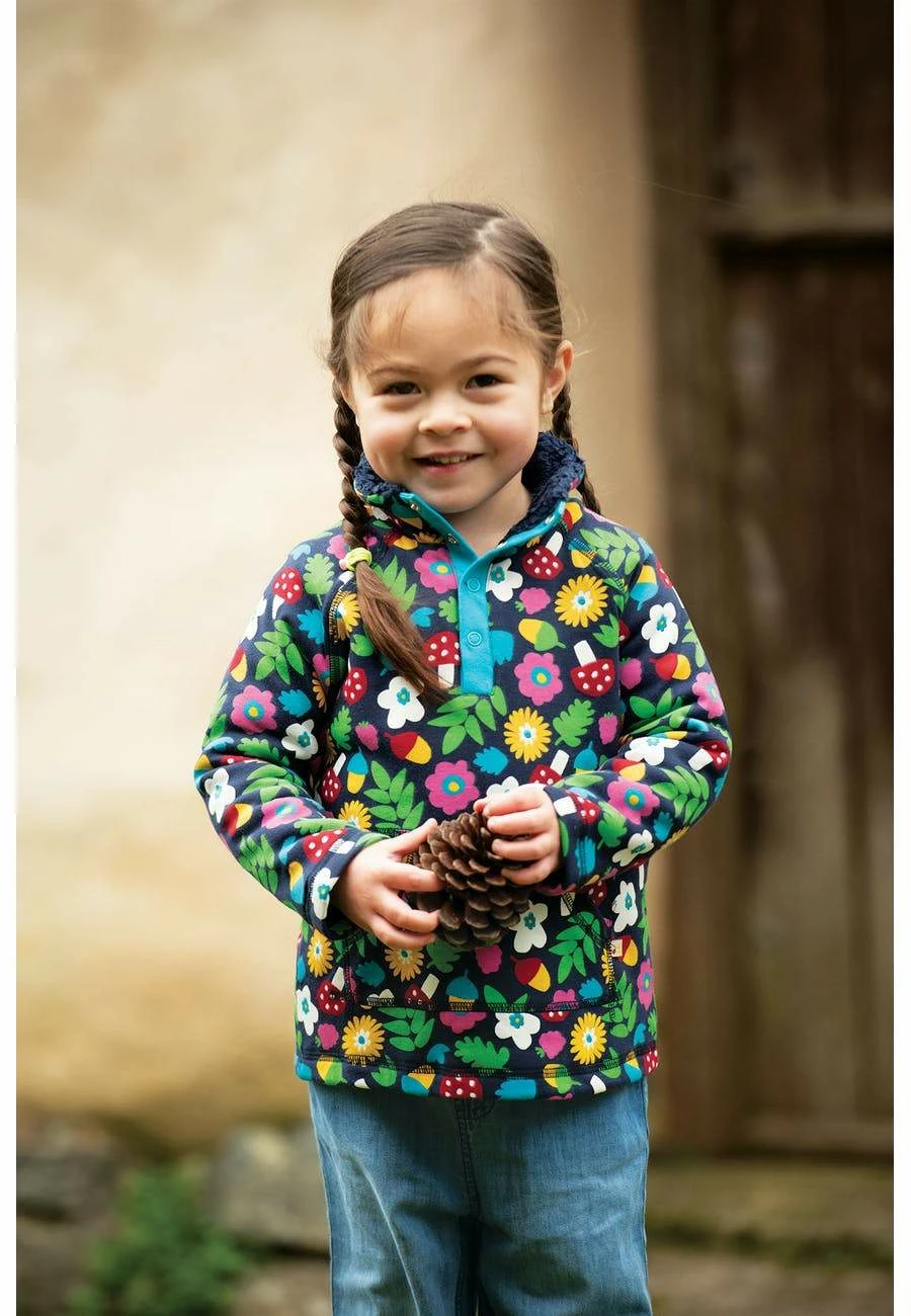 This cosy snuggle fleece is the perfect companion for adventuring out into the chilly autumn winds. Deliciously soft inside and incredibly cheerful on the outside, the Lost Words print is inspired by words from our natural world which are disappearing from the dictionary such as ‘acorn’ and ‘fern’. Featuring a kangaroo pocket at the front and popper fastenings at the neck for ease of dressing. 100% GOTS Certified Organic Cotton. Machine washable at 30º. Eco-friendly brand Frugi is definitely something to get excited about- since 2004 they have strived to provide beautiful clothes which are soft on sensitive skin, stand up to everyday adventure, comfortably fit cloth nappies and are kind to the world we live in.