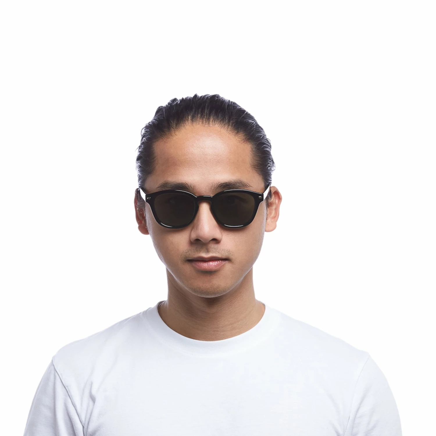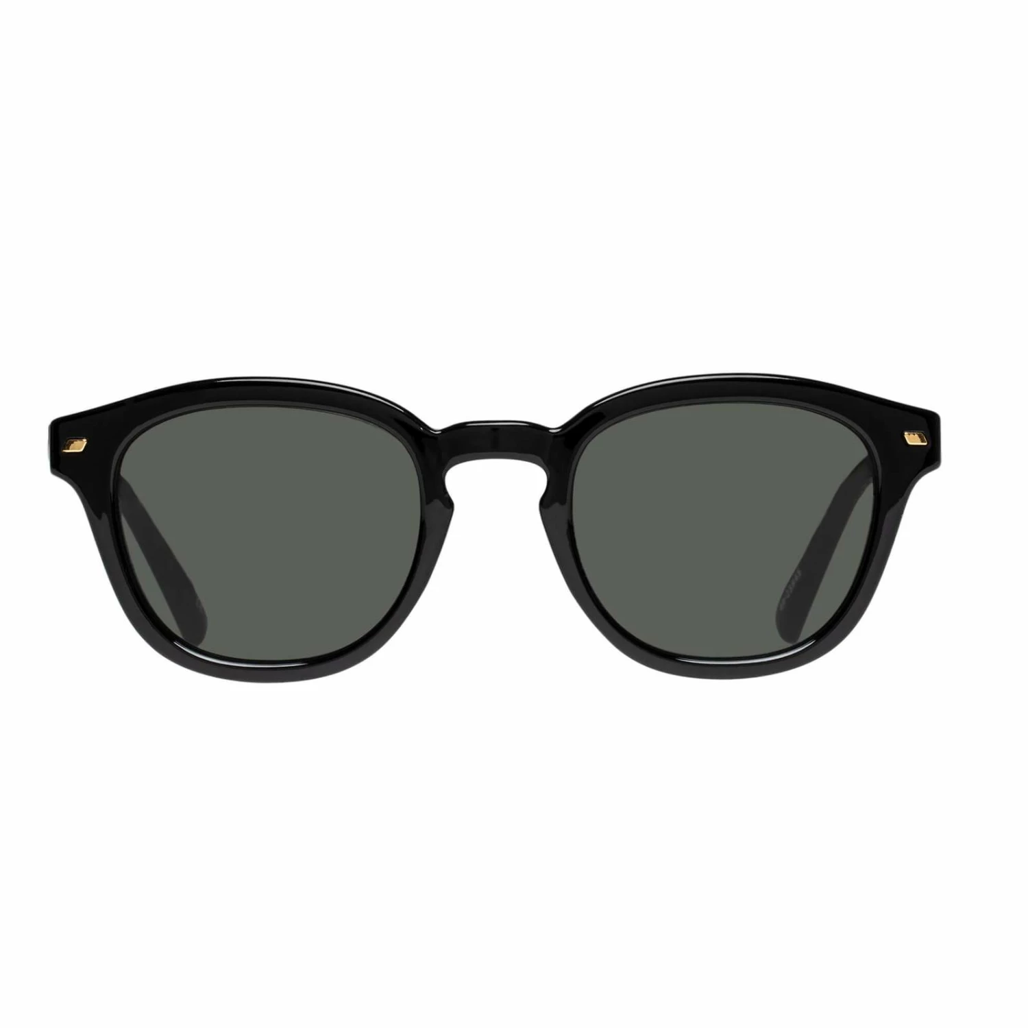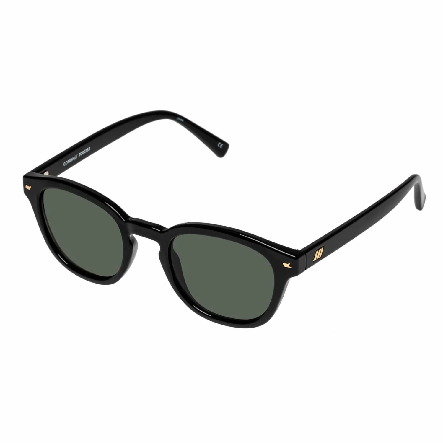 Defined by its round lenses and keyhole nose bridge, Conga offers a modern take on a mid-century silhouette. This mid-size sunglass features iconic Le Specs flagstripe metal hardware. Finished in classic black with dark lenses for an everyday look. Offering a mid-sized fit, that will suit all face shapes.