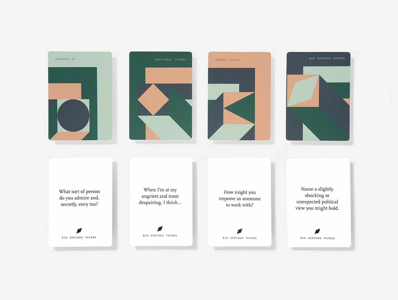 52 cards with questions and exercises for deeper and more meaningful conversations with friends.