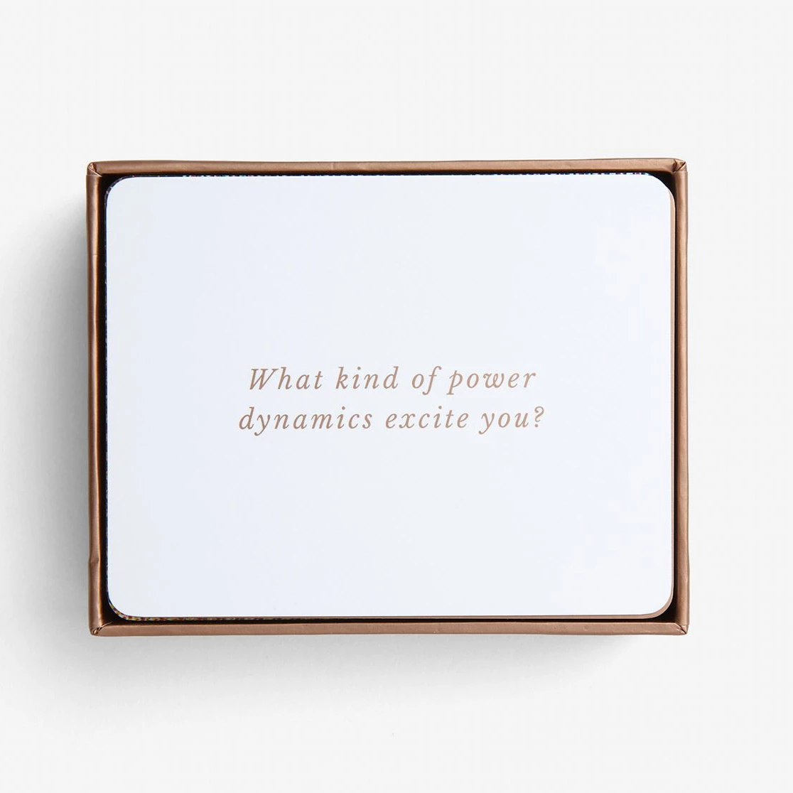 This pack of cards is designed to spark the best kind of pillow talk: the sort where we explore sex with intimacy, playfulness and intellectual curiosity. Here are sixty questions to provoke some of the best conversations possible, guaranteed to leave us with a new sense of liberation and closeness.